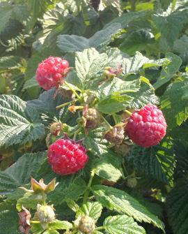 Mycket lågväxande hallon, mognar redan på sommaren, passar perfekt för krukodling