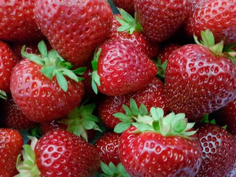 Smultron, röda, söta bär som ger skörd hela säsongen, bildar inte revor