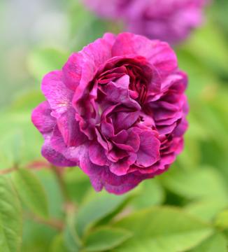 Rugosa typ, blommar med djup ljusrosa-lila, halvdubbla blom, massor av nypon