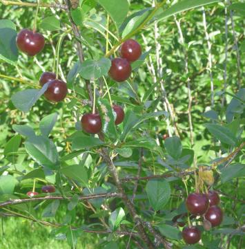 Runda, purpurröda, sötsyrliga bär, självfertil